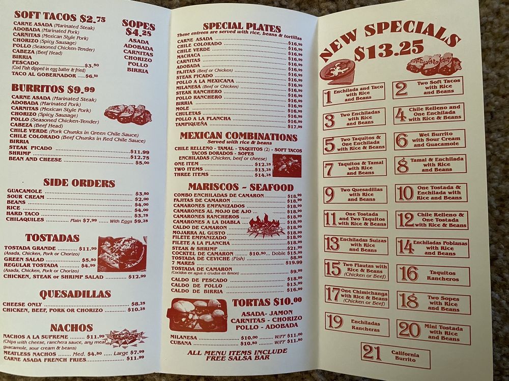 The menu is a delightful exploration of diverse dishes, from savory burritos to delicious chilaquiles, each crafted with passion. Start your experience with complimentary nachos and choose from a salsa bar that celebrates the essence of genuine Mexican cuisine.